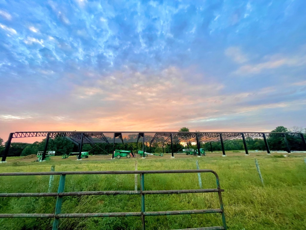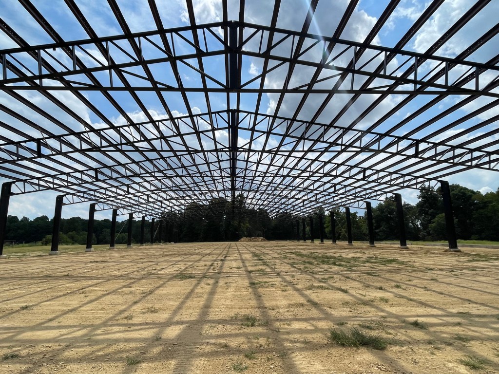 Currently under construction – 130′ x 250′ covered arena situated on our picturesque ranch. Considerable parking allows for events of varying sizes. Currently we have limited stalls and electric plugs available, but plan to have more in the future.