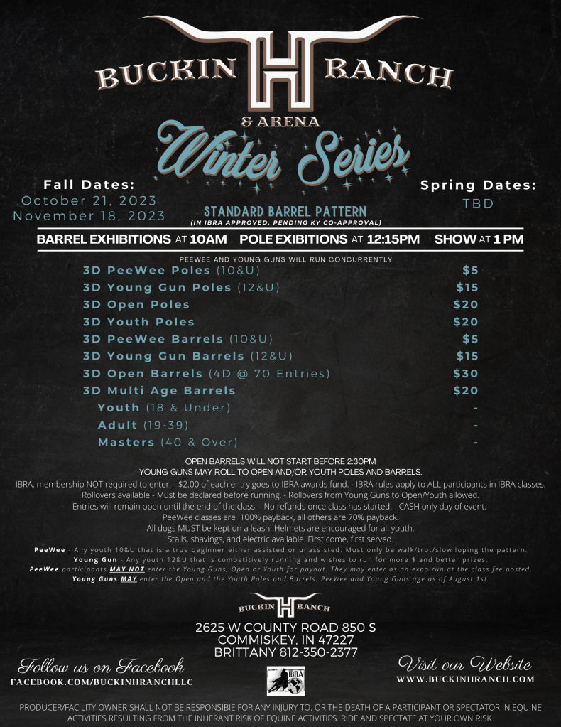 Exhibition Schedule: Exhibitions will be conducted in allocated time slots. – Barrels – 10:00-10:25, 10:30-10:55, 11:00-11:25, 11:30-12:00 – Poles – 12:15-12:45.